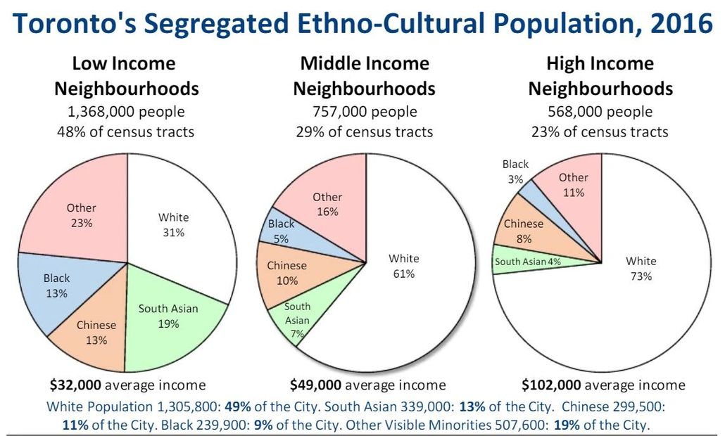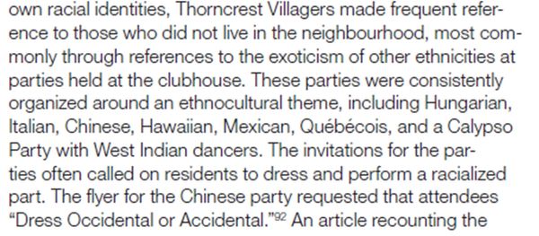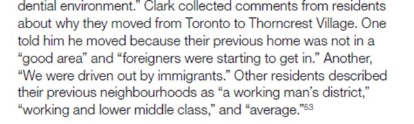 New communities were build in Toronto. These new communities included predominantly or only detached housing. This housing was purchased by wealthier and White residents to 'escape' neighbourhoods that included people of other ethnic backgrounds.