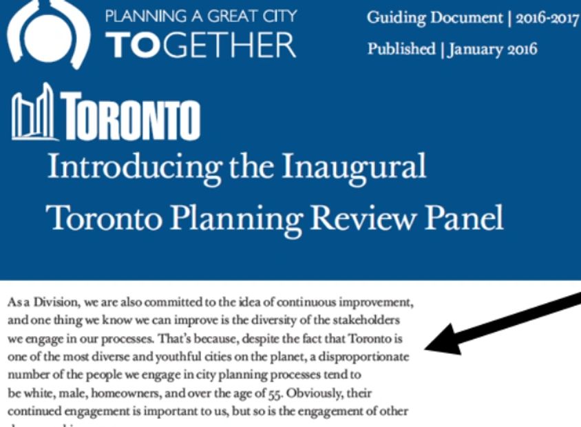 The average and typical participant of a community planning consultation, from 1905 to today, has been White homeowners. Through the lack inclusion of Black, Indigenous, or other marginalized voices, the City of Toronto's neighbourhoods have not been designed to provide adequate supplies of housing accessible to groups who experience anti-Black and anti-Indigenous racism.